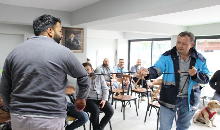 Nilüfer Belediyesi Veteriner İşler Müdürlüğü personeline sokak hayvanlarına ‘İnsancıl Yaklaşım Eğitimi’ verildi. Köpek Davranış Uzmanı Gökçen Yücekaya, “Köpeklerin gözlerinin içine bakmamalıyız. Bir an ağaç gibi bir objeye dönüşmeliyiz. Hareketsiz kaldığımızda köpekler bizi koklayarak o alanı terk ediyorlar” dedi.