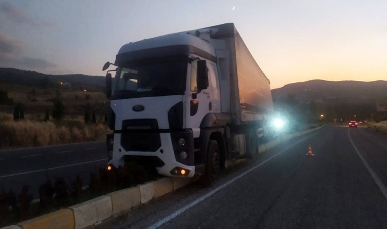 Konya’nın Bozkır ilçesinde sürücüsü direksiyon başında rahatsızlanan tır refüje çıktı.