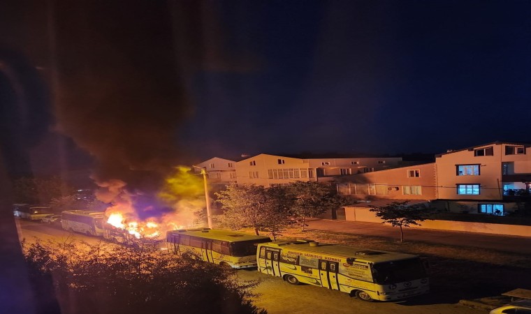Tekirdağ Çorlu’da park halinde bulunan sürücü kursuna ait yolcu minibüsü alev alev yandı.