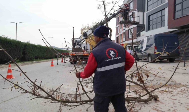 Düzce Belediyesi Park ve Bahçeler Müdürlüğü, ana arterlerde bulunan ağaçların tehlike oluşturmaması için budama çalışması başlattı.