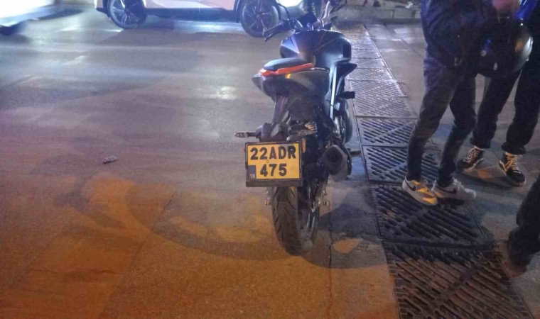 Edirne’de hareket halindeki motosiklet sürücüsü, bir anlık dalgınlık sonucu taksiye arkadan çarptı.