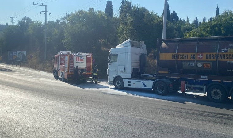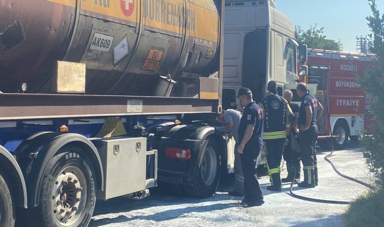 Kocaeli’nin Gebze ilçesinde seyir halindeki kimyasal yüklü tırın kupa kısmında yangın çıktı. Sürücünün dikkati sayesinde facianın önüne geçildi.