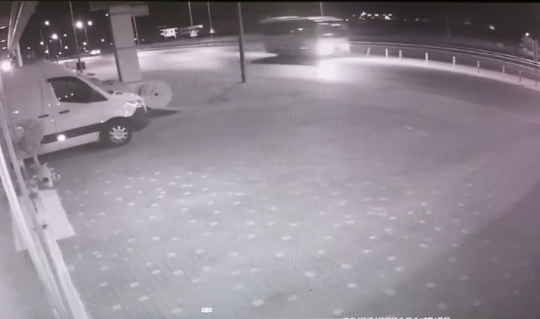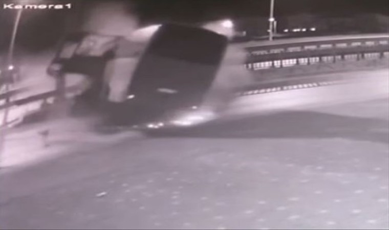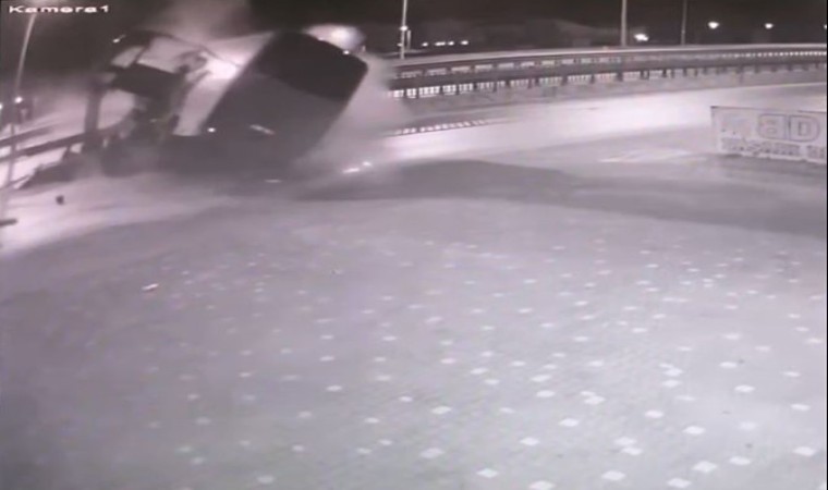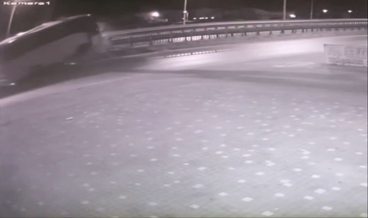 Öte yandan kazaya ait güvenlik kamerası ortaya çıktı. Görüntülerde midibüsün bariyer ve beton duvara çarparak şiddetli bir şekilde savrulması yer aldı.
