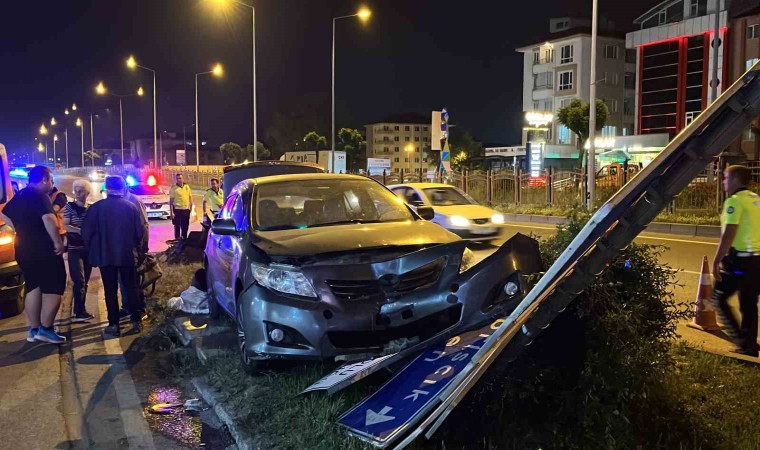 Bolu’da D-100 karayolunda sürücünün direksiyon başında fenalaşmasıyla otomobil, refüjdeki tabelalara çarptı. Kazada sürücü yaralandı.
