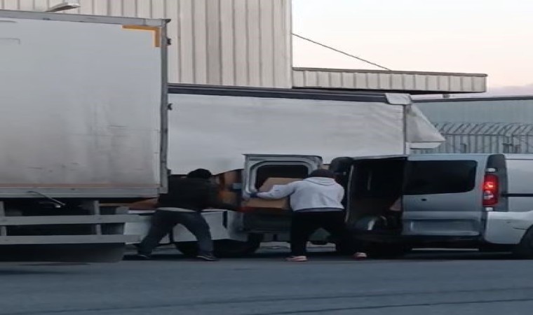 Esenyurt’ta panelvan minibüs ile tırın yanına yaklaşan 3 şahıs, sürücüsünün içinde uyuduğu aracın dorsesinde bulunan kolileri çaldı. Çevredeki vatandaşların tepkileri sonrasında geldikleri araçla kaçan şahısların rahat tavırları ise cep telefonu kamerasına yansıdı.