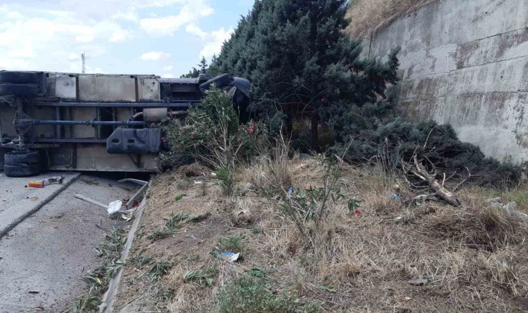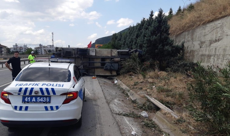 Kocaeli’nin Körfez ilçesinde sürücüsünün uyduğu iddia edilen kamyon yol kenarındaki ağaçlara çarparak devrildi.