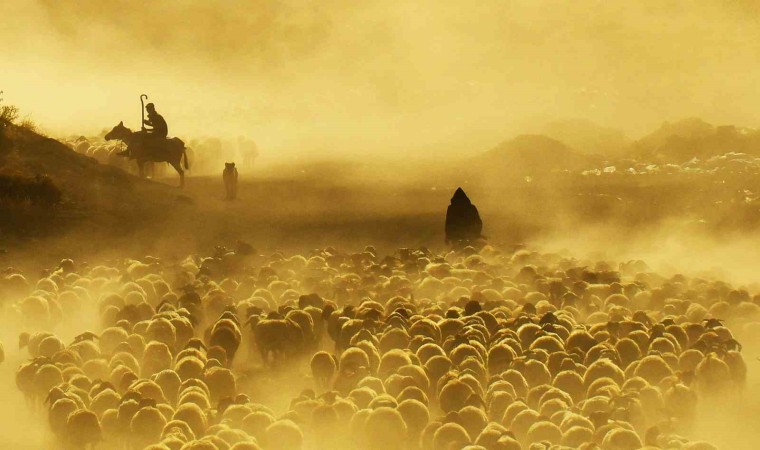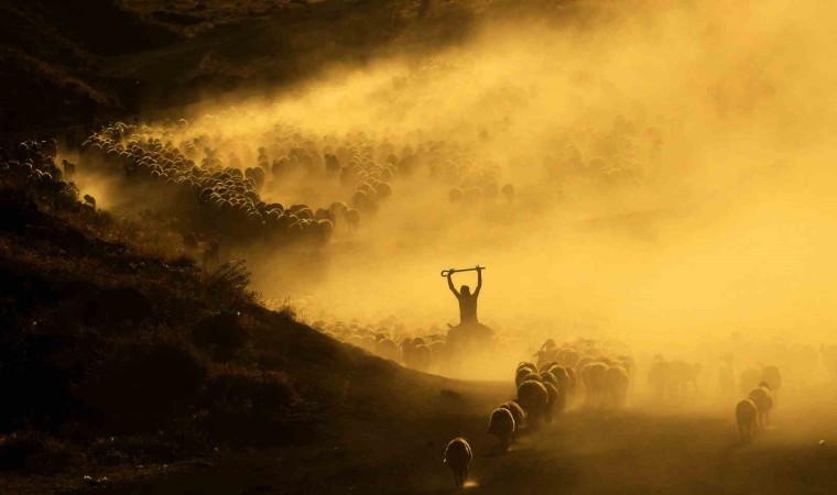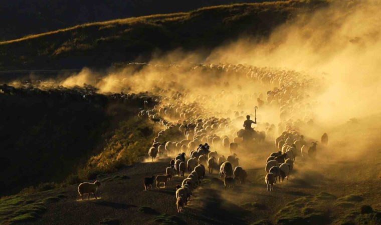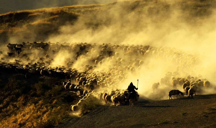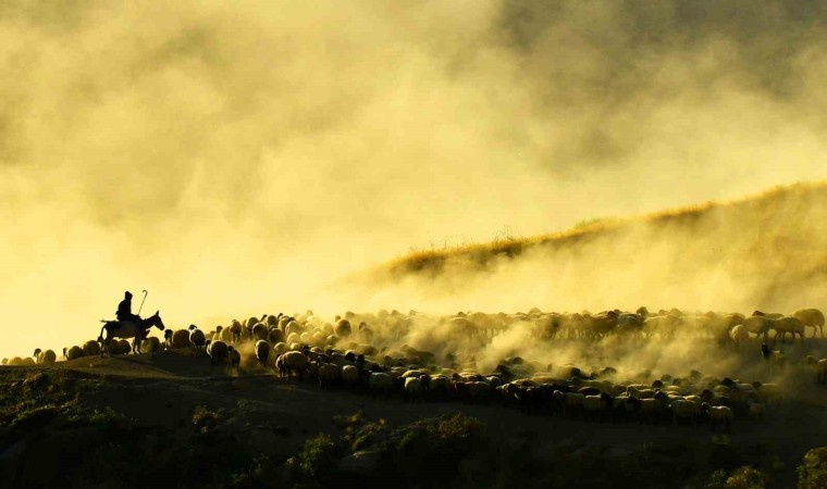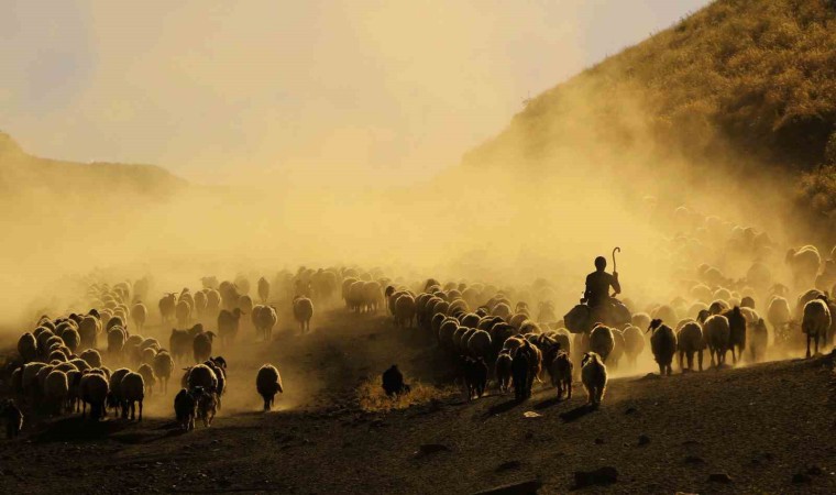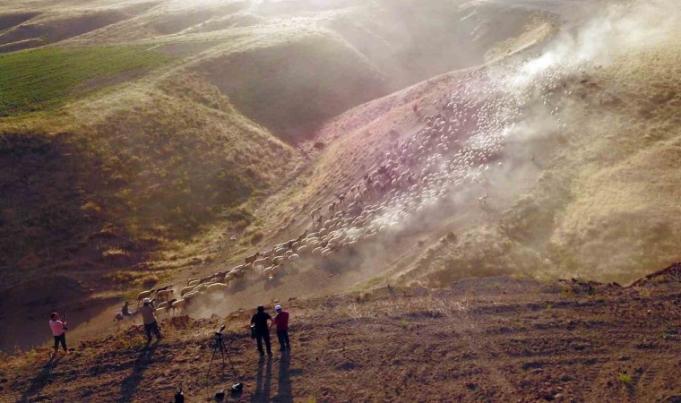 Bitlis’in Tatvan ilçesine bağlı Kıyıdüzü köyündeki koyun sürülerinin tozlu vadiden yaptıkları yolculuk görsel şölen sunarken, fotoğrafçılardan da yoğun ilgi görüyor.