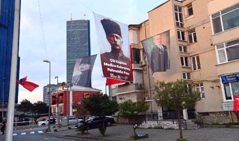 İSTANBUL, (DHA) - Beşiktaş Belediyesi ekipleri Suudi Arabistan İstanbul Başkonsolosluğu'nun yer alan Akasya sokağına Atatürk ve Fahreddin Paşa'nın görsellerini astı. Sokak Türk bayraklarıyla donatıldı. Fahreddin Paşa'nın görselinin üzerinde 'Çöl Kaplanı Medine Kahramanı' yazısı dikkat çekti.