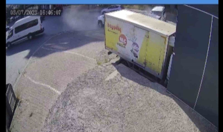 Öte yandan, kaza anı kameralara yansıdı. Görüntülerde hafif ticari aracın giderken karşısından gelen araçla çarpıştığı, çarpışmanın şiddetiyle SUV tipi aracın hafif ticari aracın üstünden atlayarak durabildiği görüldü. Kazayı anlatan esnaf Ogün Başkaya, “Yukarıda otururken inanılmaz büyük bir ses geldi. Çıkmamla aşağıdaki araç hatalı bir sollama yaptı. Sollama yaparken bir araca çarptı, diğer aracın da üstünden atladı. Bizim şirketin duvarlarından atladı. Araçlardan birinin önü yok denecek hale geldi, bir tanesinin de frenleri boşaldı” dedi.