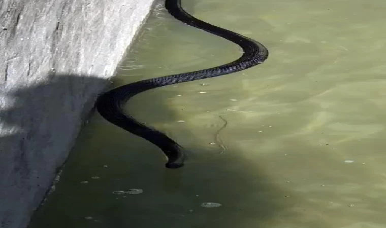 Suya düşen yılanı merdivenle kurtardı; o anlar kamerada