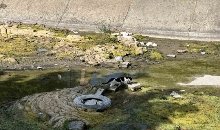 Eskişehir’de Porsuk Çayı’nın bir bölümündeki suyun kesilmesinin ardından çay yatağındaki kirlilik ortaya çıktı.