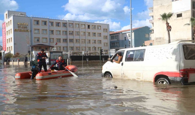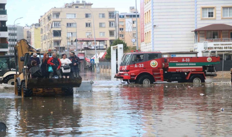 Hatay’ın İskenderun ilçesinde şiddetli yağış ve fırtınanın etkisiyle deniz sularının kapladığı kent merkezinde su seviyesi 1.5 metreyi buldu. Kurtarma çalışmalarında vatandaşlar AFAD tarafından botta kullanılıyor.
