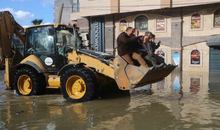 Meteorolojinin şiddetli yağış uyarısıyla birlikte Hatay’ın İskenderun ilçesi hafta sonunu yağışlı geçirdi. İskenderun ilçesinde geçtiğimiz gün akşam saatlerinde fırtınayla birlikte etkili olan şiddetli yağış caddeleri göle çevirdi. Deprem sonrası yer yer 1 metreyi bulan çökmelerin yaşandığı İskenderun sahili, denizde dalgaların boyunun 5 metreyi bulmasıyla sular altında kaldı. Çay Mahallesi’nde iş yerleri su içerisinde kalırken, araçlar da mahsur kaldı. Yer yer suyun boyunun 1.5 metreyi bulduğu Çay Mahallesi’nde evlerde mahsur kalan vatandaşlar, iş makinası, yüksek tonajlı araçlar ve AFAD tarafından botla kurtarılmaya devam ediyor.