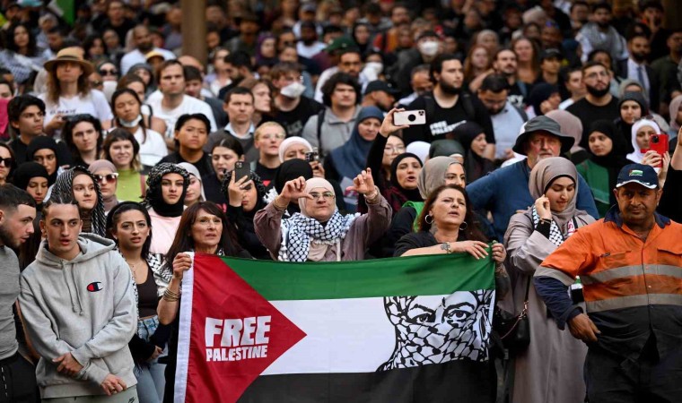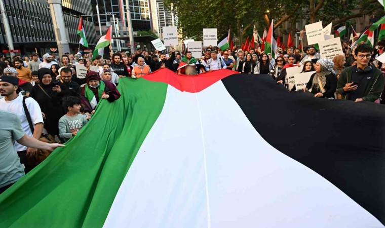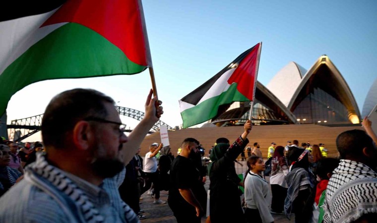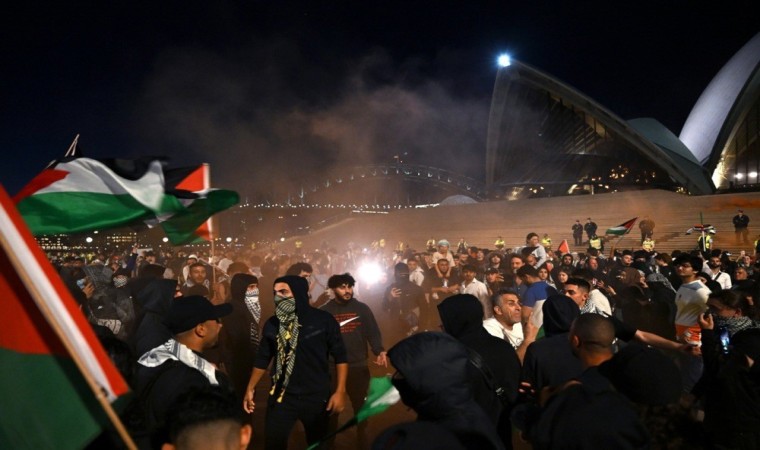 Avustralya’nın Yeni Güney Galler eyaletinin başkenti Sydney’deki Opera Binası, dün akşam saatlerinde İsrail bayrağının renkleriyle aydınlatıldı. Bayrak renklerinin binaya yansıtılması kararına tepki gösteren Filistin yanlısı protestocular Sydney Belediye Binası önünde toplanıp Opera Binası’na yürüdü. Opera önüne gelen en az bin gösterici “Özgür Filistin” ve “Utan İsrail” sloganları attı. Bazı göstericiler binaya işaret fişeği fırlatırken, göstericilerin bir kısmının antisemitist sloganlar attığı duyuldu.