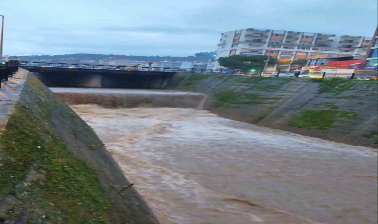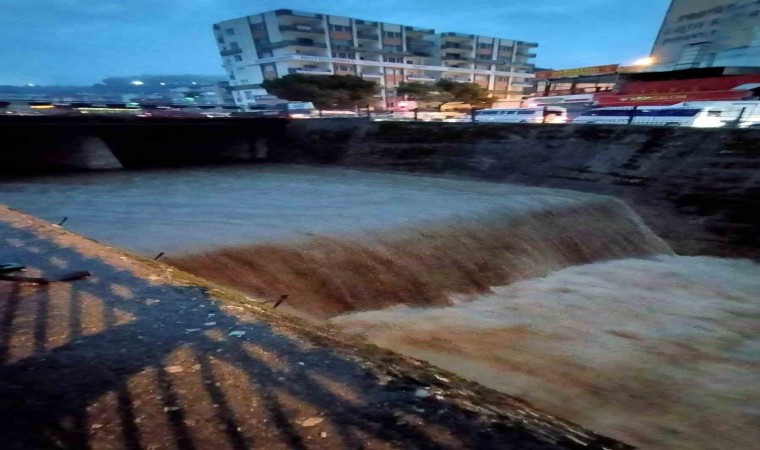 Aydın’da etkili olan sağanak yağışın ardından yağmur suları Tabakhane Deresi’ni coşturdu.