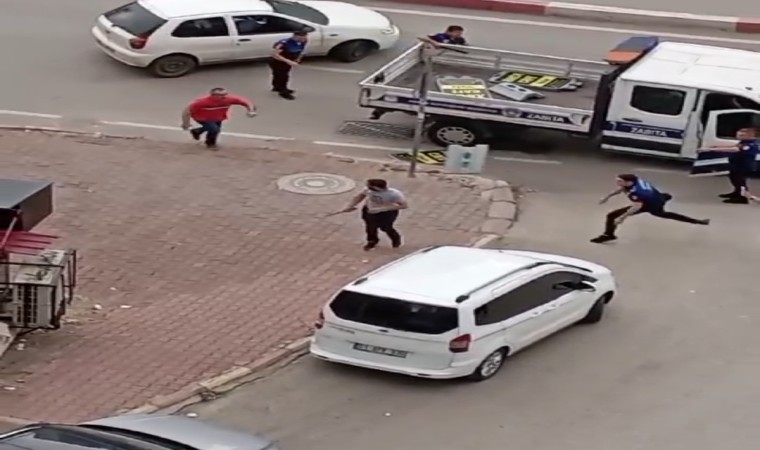 Edinilen bilgiye göre, olay, merkez Çukurova ilçesine bağlı Yurt Mahallesinde Kurttepe Caddesinde meydana geldi. İddiaya göre, zabıta ekipleri kaldırım işgaline yönelik çalışma başlattı. Kaldırıma konan tezgah ve tabelaları toplayıp kamyonete koydu. Zabıta, Fırat T. isimli esnafın da tabelasına alıp kamyonete koyup uzaklaştı. Bu durumu öğrenen Fırat T. otomobili ile kamyonetin önünü keserek tabelasına almaya çalıştı. Zabıta ekipleri de tabelayı vermeyince Fırat T., zabıta ekiplerine bıçak çekti. Fırat T. elinde bıçakla zabıta ekiplerine “Hadi gelin” diyerek kovalamaya başladı. Fırat T.’nin arkadaşı ise onu “yapma” diyerek ikna etmeye çalıştı. Bu sırada zabıta ekipleri de esnafa biber gazı sıkarak onu etkisiz hale getirdi. Bir zabıta elindeki dubayla Fırat T.’nın kafasına vurduğu görüldü. Biber gazından dolayı etkisiz hale gelen Fırat T.’ye bazı zabıta ekiplerinin de yumruk attığı görüldü. Fırat T. zabıta ekiplerine bıçak çekip zorluk çıkardığı için gözaltına alındı.