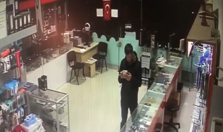 Antalya’nın Alanya ilçesinde tablet bakmak için bir dükkana giren şahıs, kaşla göz arasında 30 bin TL değerindeki 2 telefonu alarak kaçtı. Şahsın hırsızlık anları güvenlik kamerası tarafından kaydedildi.