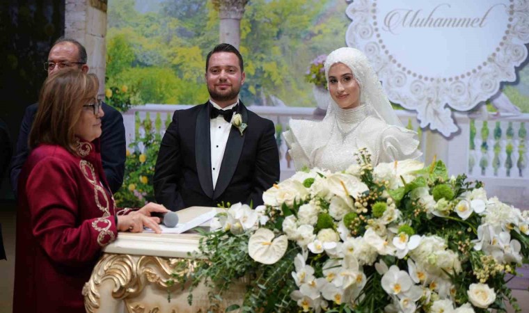 Nikahı kıyan Gaziantep Büyükşehir Belediye Başkanı Fatma Şahin, Gaziantep modeline vurgu yaparak, “Gaziantep modeli, birlikten kuvvet doğar modeli ben hepinizin adına nikaha katılan herkese hoş geldiniz diyorum. Başkanımıza da ayrı yeten teşekkür ediyorum. Karıncalar gibi çalışıp dev eserler bırakıyor. Kıymetli başkanımızın çok emeği var ama en önemli makam ana baba makamıdır. Bu günkü heyecanını ben de paylaşıyorum” dedi.