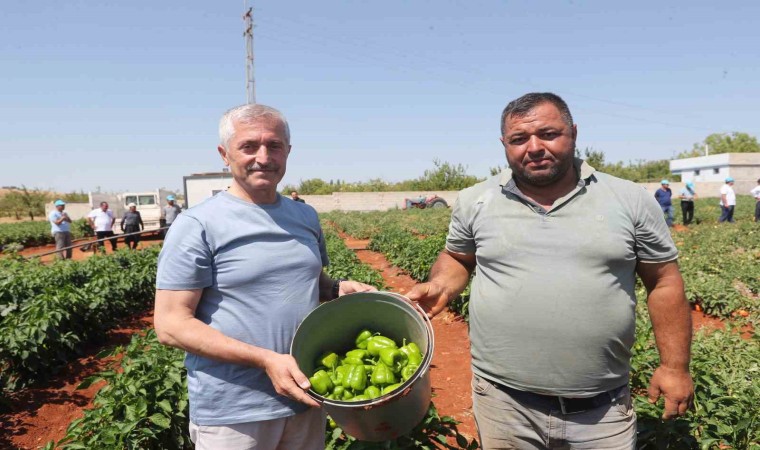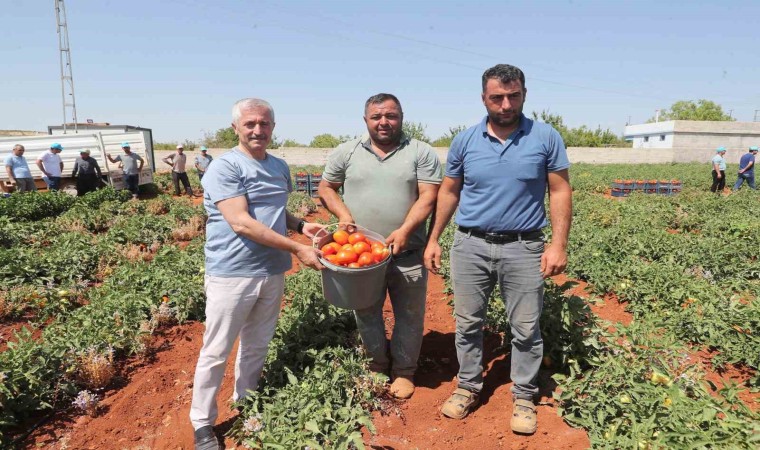 Çiftçilere toplam 33 milyon 500 bin adet domates, biber, salatalık, patlıcan ve kavun fidesi dağıtan Başkan Mehmet Tahmazoğlu, çiftçiler ile birlikte domates ve biber toplayıp sohbet etti.