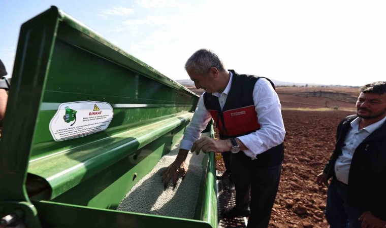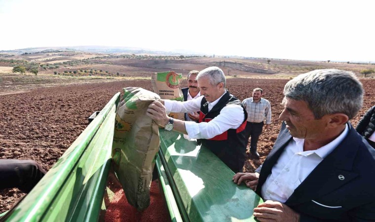 Şahinbey Belediye Başkanı Mehmet Tahmazoğlu, çiftçilerin desteklenmesi için dağıttığı buğday tohumunu ve gübreyi çiftçilerle birlikte toprakla buluşturdu.