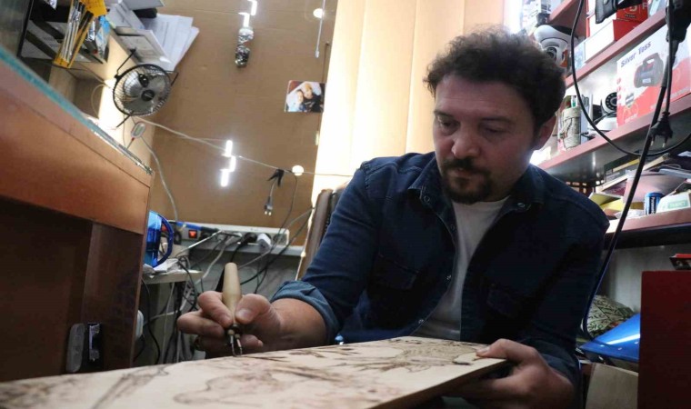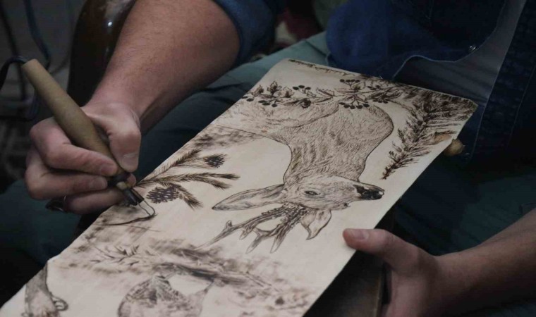 Doğaya yakın bir yerde büyüdüğünü ifade eden Abdulkadir Yeniyapı, “Ben doğaya yakın bir yerde büyüdüm. O yüzden hep doğanın içinde olduğum için bunları yaşadım. Gördüm yani. Herhangi bir ağaca sanat işlemeyi severek yapıyorum. Tahtayı bile güzel bir şekilde işleyerek sanata dönüştürebiliyorum yani. Bakarak çizdiklerim de var, bakmadan da çizebiliyorum. Daha önce kara kalem çalışmalarım falan oldu. Elimden geldiğince bir şeyler yapıyorum. Yani destekleyen de oluyor, alan da oluyor, elimdekilerin bir kısmını sattım. Hediye de ettiğim oldu. Benim özel yakı aletlerim var. Değişik uçlar var, ucuna taktığım onları değiştirip değiştirip değişik şekillerde çizim yapabiliyorum” dedi.