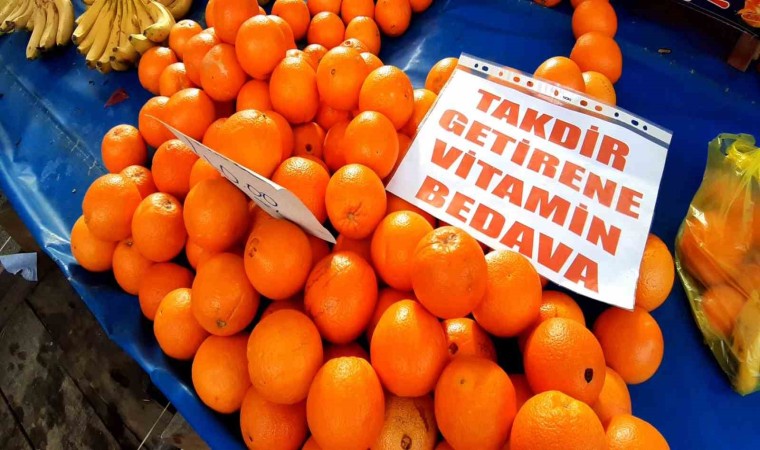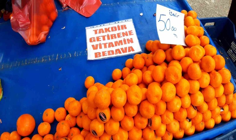 Bolu’da bir pazarcı esnafı portakal ve mandalina sattığı tezgahına "Takdir belgesi getirene vitamin bedava" yazısı asarak, öğrencilere ücretsiz meyve verdi.