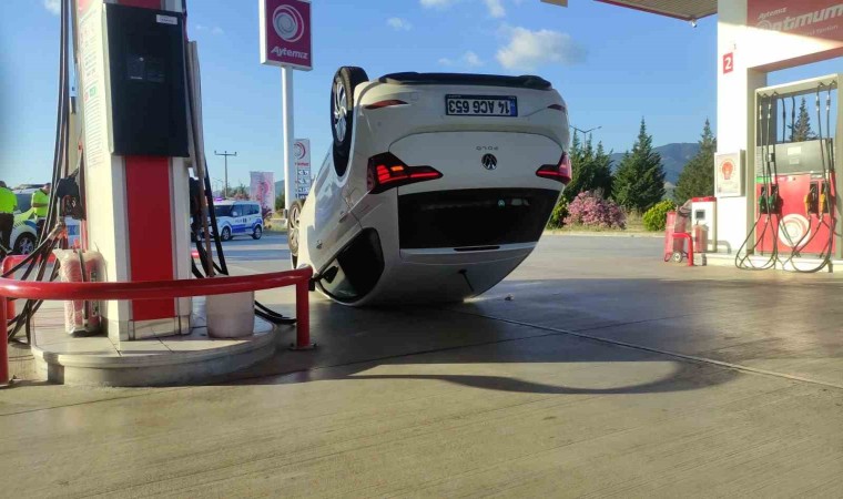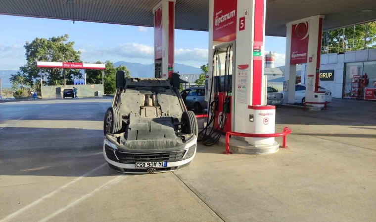 Bursa’nın Orhangazi ilçesinde ana yol üzerinde kontrolden çıkan otomobil, takla atarak akaryakıt istasyonuna daldı. Ters şekilde metrelerce sürüklenen otomobilin sürücüsü yaralanırken, aracın akaryakıt pompalarının yanında durması ile faciadan dönüldü.