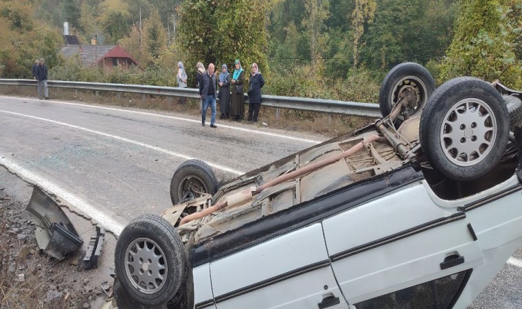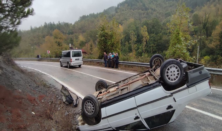 Bartın’da yağmur nedeniyle kayganlaşan yolda virajı alamayan otomobil takla attı. Sürücü ile eşi kazayı hafif yaralı olarak atlattı.