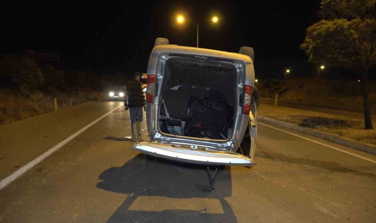 Kırıkkale’de kontrolden çıkan hafif ticari aracın karşı şeride geçerek takla attığı kazada sürücü yaralandı.