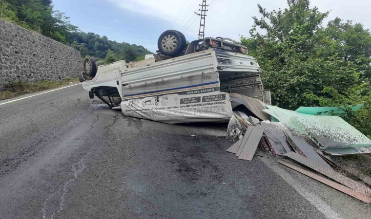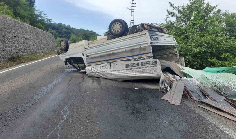 Ordu’nun Ünye ilçesinde mobilya yüklü kamyonetin takla atması sonucu meydana gelen kazayı sürücü ve eşi yara almadan atlattı.