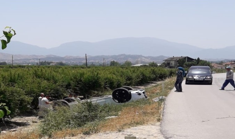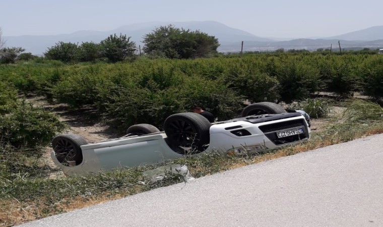Denizli’nin Pamukkale ilçesinde kontrolden çıkarak takla atıp, şarampolde ters dönen otomobildeki 2 kişi yaralandı.