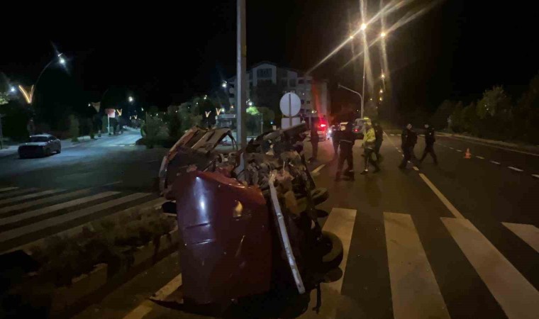 Nevşehir’de aşırı hızlı otomobil önce orta refüje ardından takla atarak trafik lambasına çarptı. Kazada 2 kişi yaralandı.