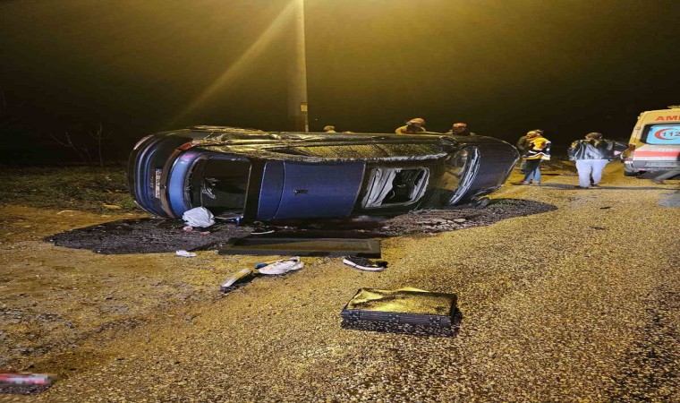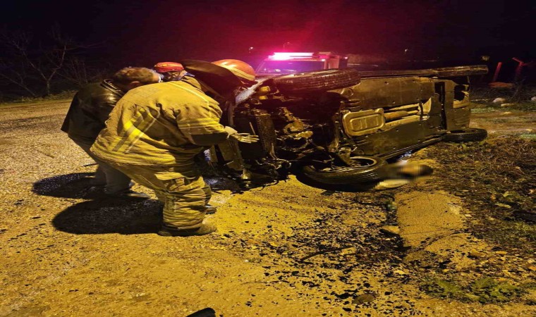 Bursa’nın Kestel ilçesinde meydana gelen kazada direğe çarpan sürücü, takla atan otomobilin altında feci şekilde can verdi.