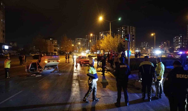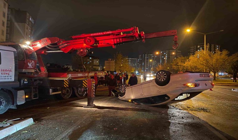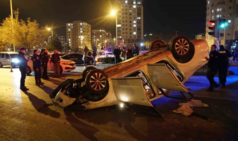 Kayseri’nin Melikgazi ilçesinde 15 yaşındaki sürücünün kullandığı otomobil, kırmızı ışıkta duran 2 araca çarparak takla attı. Kazada 4 kişi yaralanırken, takla atan otomobilin sahibi aracın kapıları zarar görmemesi için vinç getirtti.
