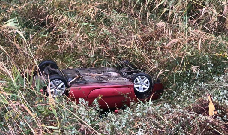 Tekirdağ Çorlu’da kayganlaşan yolda virajı alamayan otomobil takla atarak dereye uçtu. Ters dönen arabanın içinden burnu bile kanamadan çıkan sürücü, kaza yapan otomobiline bir süre bakakaldı.