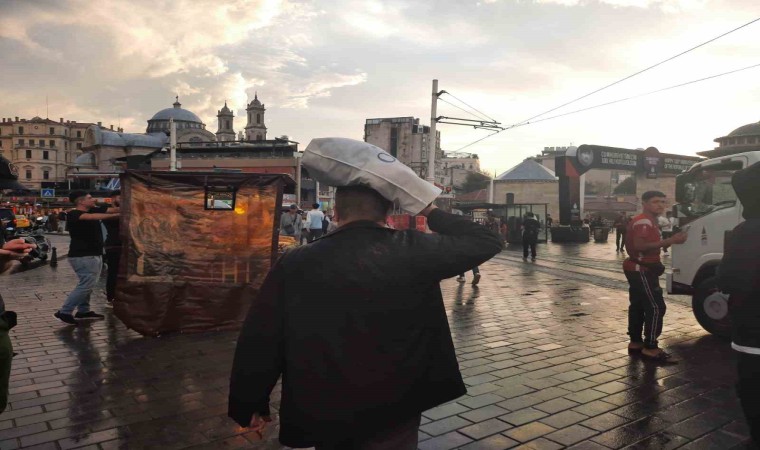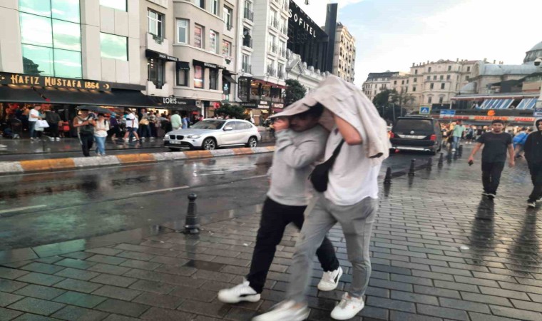 İstanbul Taksim’de aniden bastıran yağmur vatandaşlara zor anlar yaşattı.