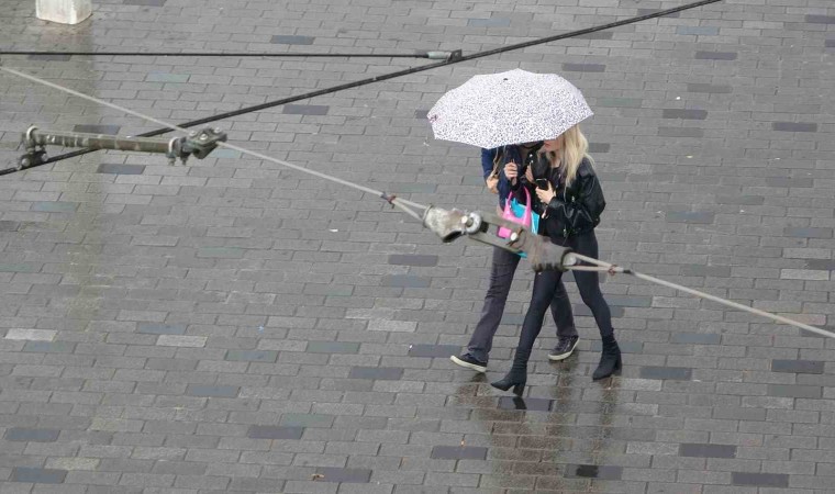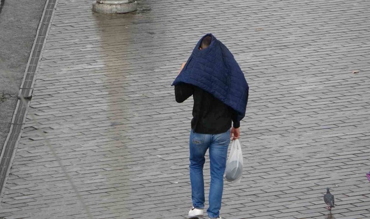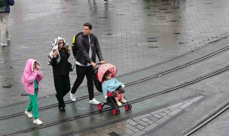 İstanbul Taksim’de aniden bastıran yağmur ve etkili olan şiddetli rüzgar vatandaşlara zor anlar yaşattı.