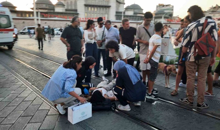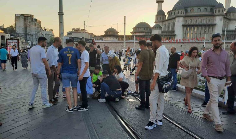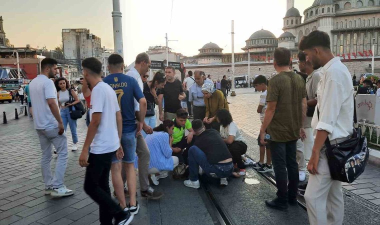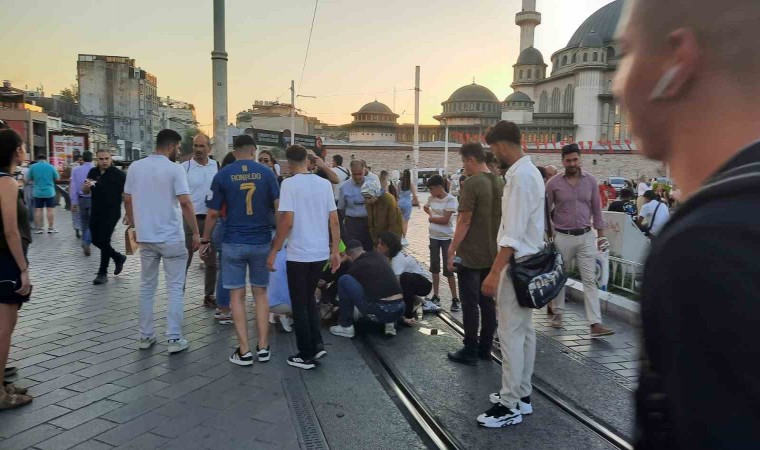 Taksim’de epilepsi hastası bir genç kız, nöbet geçirerek yere yığıldı. Genç kızın yardımına koşan yerli ve yabancı turistler ile trafik polisi cep telefonu kamerasına yansıdı.