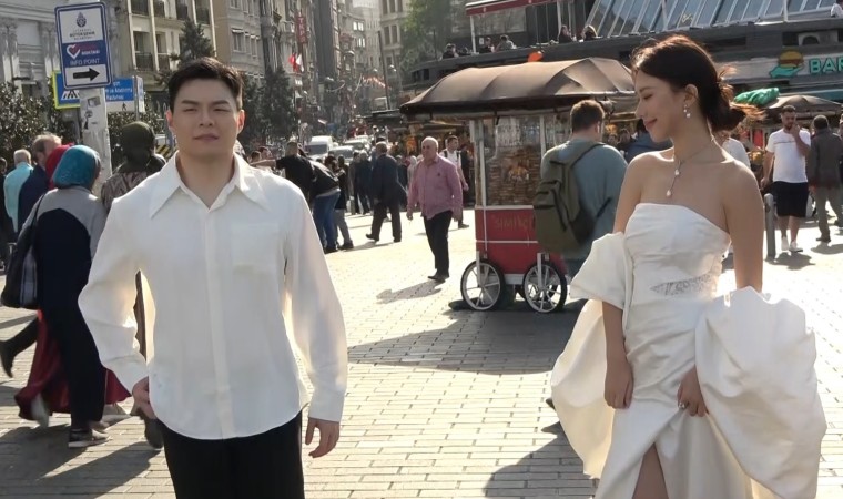 Yerli ve yabancı turistlerin uğrak noktası olan Taksim Meydanı, bu sefer Çinli gelin ve damadı ağırladı. Çin’den evlenmek için İstanbul’a gelen çift, fotoğraf çekimi için Taksim Meydanı ve İstiklal Caddesi’ni tercih etti. Düğün fotoğraflarını Taksim Meydanı ile çevresinde çektiren çift, İstiklal Caddesi girişindeki nostaljik tramvaya binerek poz verdi. Çinli gelin ve damadı gören yerli ve yabancı turistler ise cep telefonlarıyla genç çiftin fotoğraflarını çekti.