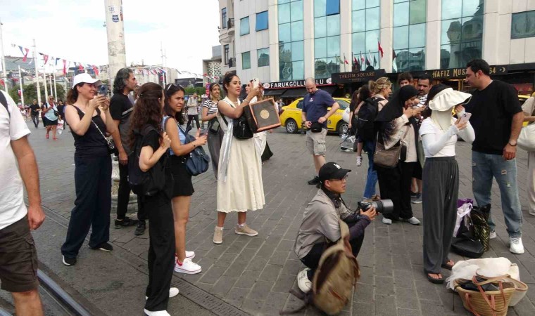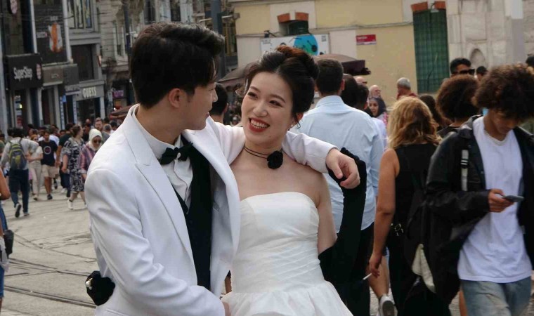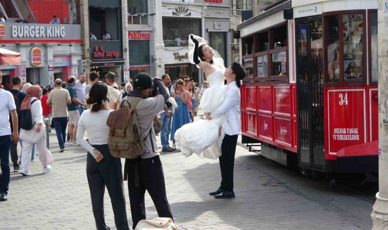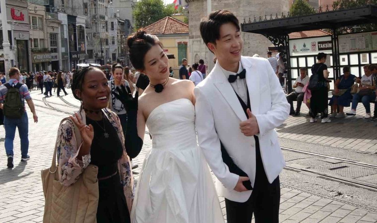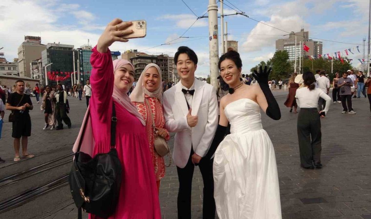 Taksim Meydanı, İstanbul’da evlenen yabancı çiftlerin bu sene de düğün çekimleri için uğrak noktası oldu. Çinli bir çift, düğün fotoğrafı çekimi için İstanbul Taksim Meydanı’na geldi. Düğün fotoğraflarını Taksim Meydanı ile çevresinde çektiren gelin ve damat, İstiklal Caddesi üzerinde ve nostaljik tramvay önünde poz verdi. Yabancı gelin ve damadı gören vatandaşların cep telefonlarıyla genç çiftlerin fotoğraflarını çekmesi ortaya renkli görüntülerin çıkmasına neden oldu. Taksim Meydanı bu sene de düğün çekimi yapmak isteyen yabancı çiftlerin uğrak noktası oldu.