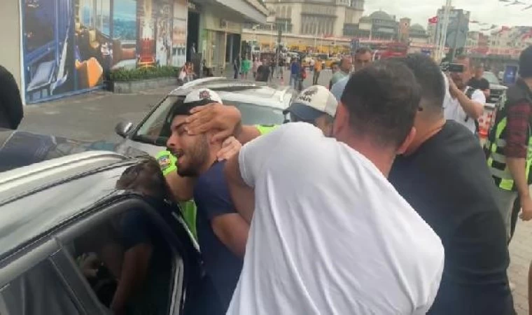 Zeki GÜNAL- Mustafa Mert KARACA /İSTANBUL,(DHA) BEYOĞLU Taksim Meydanı’nda sivil trafik ekiplerinin, yolcu seçtiğini tespit ettiği taksi şoförüne para cezası kesildi. Aracının bağlanacağını öğrenen şoför taşkınlık yapıp tehditler savurunca polis ekipleri tarafından gözaltına alındı.Taksicinin sivil trafik polisini aracına almadığı anlar ekiplerin kamerasına yansıdı.