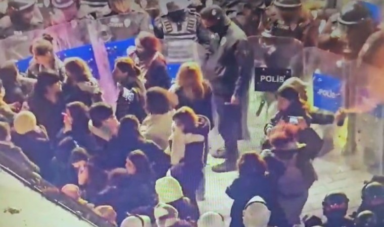 Karaköy ve Şişhane’den Taksime izinsiz yürümek isteyen bir grup kadın, önlem alan polise biber gazı ve sprey boya sıktı. O anlar kameraya yansırken, uyarılara rağmen dağılmayan çok sayıda gösterici gözaltına alındı.
