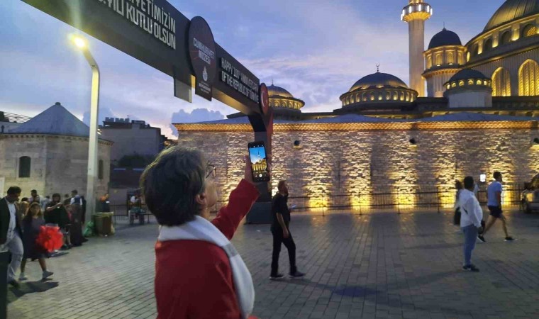 Taksim’de gün batımı kartpostallık manzara oluştururken, manzarayı kaçırmak istemeyen vatandaşlar o anları kayıt altına aldı.