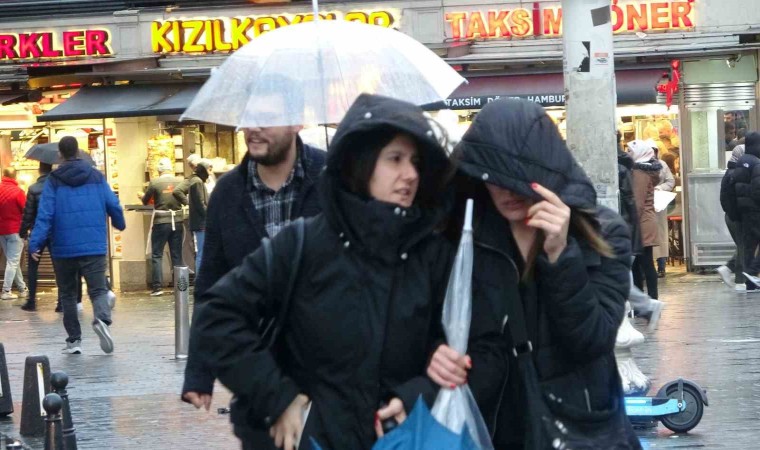 İstanbul’da etkili olan kuvvetli rüzgar ve yağmur vatandaşlara zor anlar yaşattı. Taksim’de vatandaşların yağmurdan korunmak için kullandığı şemsiyelerin şiddetli rüzgar yüzünden kırıldığı görüldü.