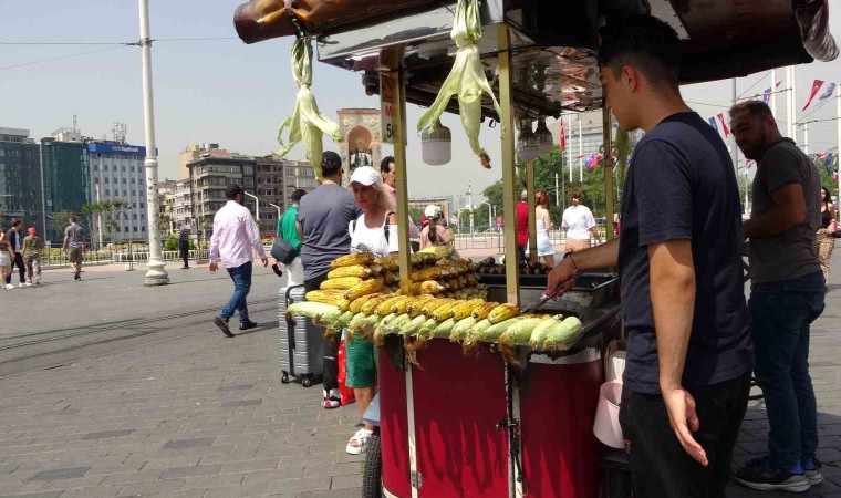 Taksim’de kestane satan esnaf Baran Deniz, “Sıcaktan nasıl etkilenmeyelim? 3 tane ocak yanıyor, tepemizde de güneş var. Yandık burada. Ekmeğimizin başındayız çok şükür. Alın teriyle paramızı kazanıp yolumuza bakmaya çalışıyoruz” dedi.