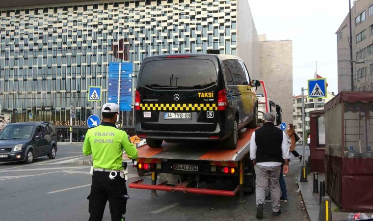 Taksim Meydanı’nda İstanbul İl Emniyet Müdürlüğüne bağlı trafik polisleri tarafından ticari taksilere yönelik denetim yapıldı. Yapılan denetimde 5 taksi bağlanırken toplam 38 bin 634 TL para cezası kesildi.