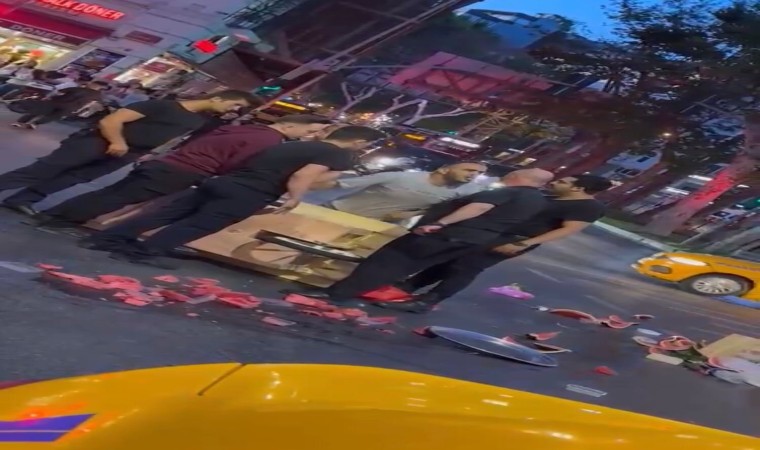 Beyoğlu Taksim Talimhane mevisinde dün saat 22.00 sıralarında yaşanan olayda, seyyar arabasında karpuz satan bir vatandaşa, İstanbul Büyükşehir Belediye (İBB) ekipleri zorla müdahale etmek istedi. Müdahale esnasında araçta bulunan karpuzların yere döküldüğü görülürken, satıcı ekmek teknesini ekiplere vermemek için büyük çaba sarf etti.