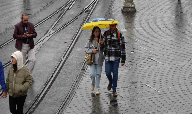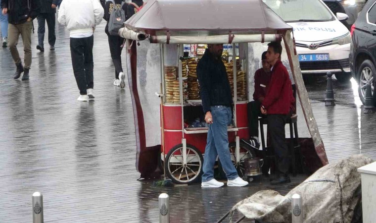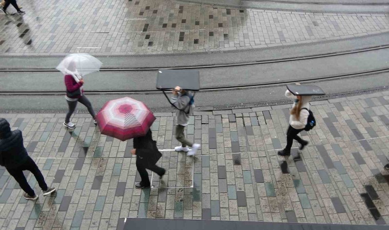 Taksim’de etkili olan soğuk ve yağmurlu hava vatandaşlara zor anlar yaşattı.