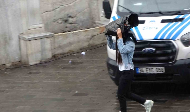 Taksim’de öğle saatlerinde aniden bastıran yağmur vatandaşlara zor anlar yaşattı. Evlerinden hazırlıksız çıkan bazı vatandaşlar kapüşonlarıyla yağmurdan korundu, kimisi de yağmurdan koşarak kaçmaya çalıştı. Rüzgardan dolayı vatandaşların hareket etmekte güçlük çektiği görüldü.