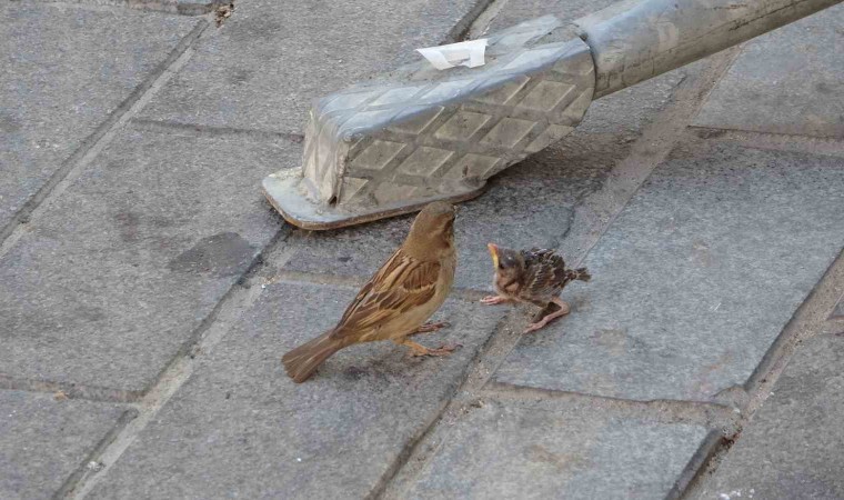Taksim’de yavru serçe çeşme üzerinde yer alan kuş evindeki yuvasından yere düştü. Polis ekipleri serçeyi güvenli bir alana alırken, itfaiye de yuvasına geri bıraktı. Anne serçenin yerdeki yavrusunu beslemeye çalıştığı anlar duygusal görüntülere sahne oldu.